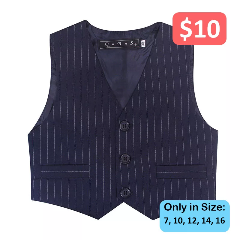 Boys Formal Navy Pinstripe Vest, Size 7, 10, 12, 14, 16 Yrs Only