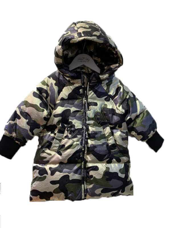 Stylish boys winter coat in green camo.